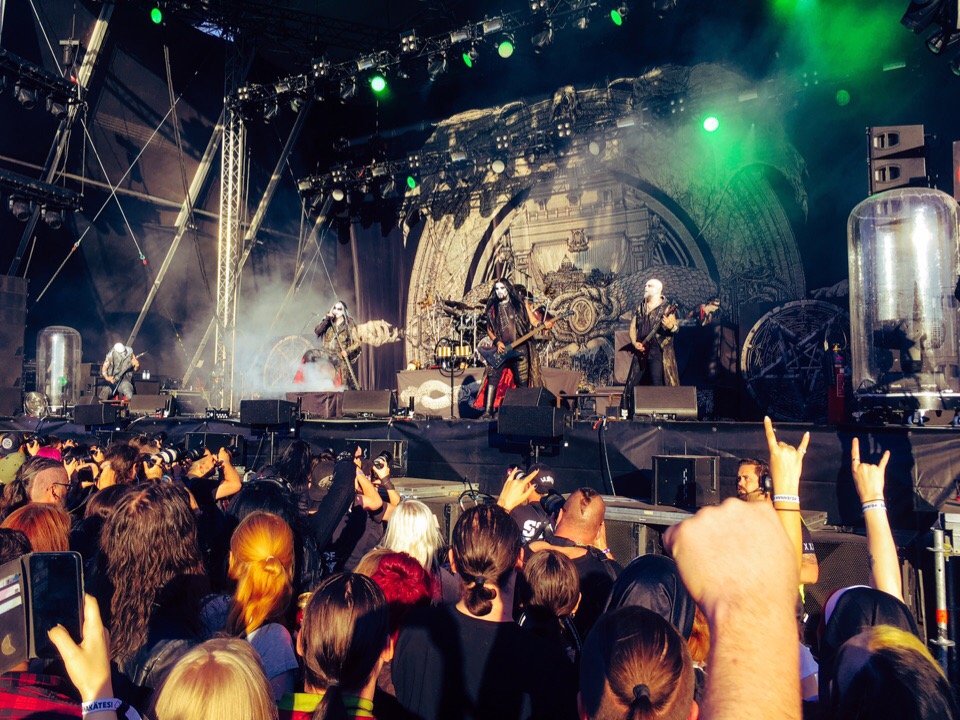 The first group we tried to get into was Battle Beast, then Anthrax hit the thrash metal, then we had to wait at the stage for an hour, waiting for Dimmu Borgir, whose performance during the day looks, of course, a little different than in the more organic darkness for them, but this did not interfere in any way with Shagrath, and it was easy to turn on the audience. Amorphis were the headliners of the first day of their almost native festival.